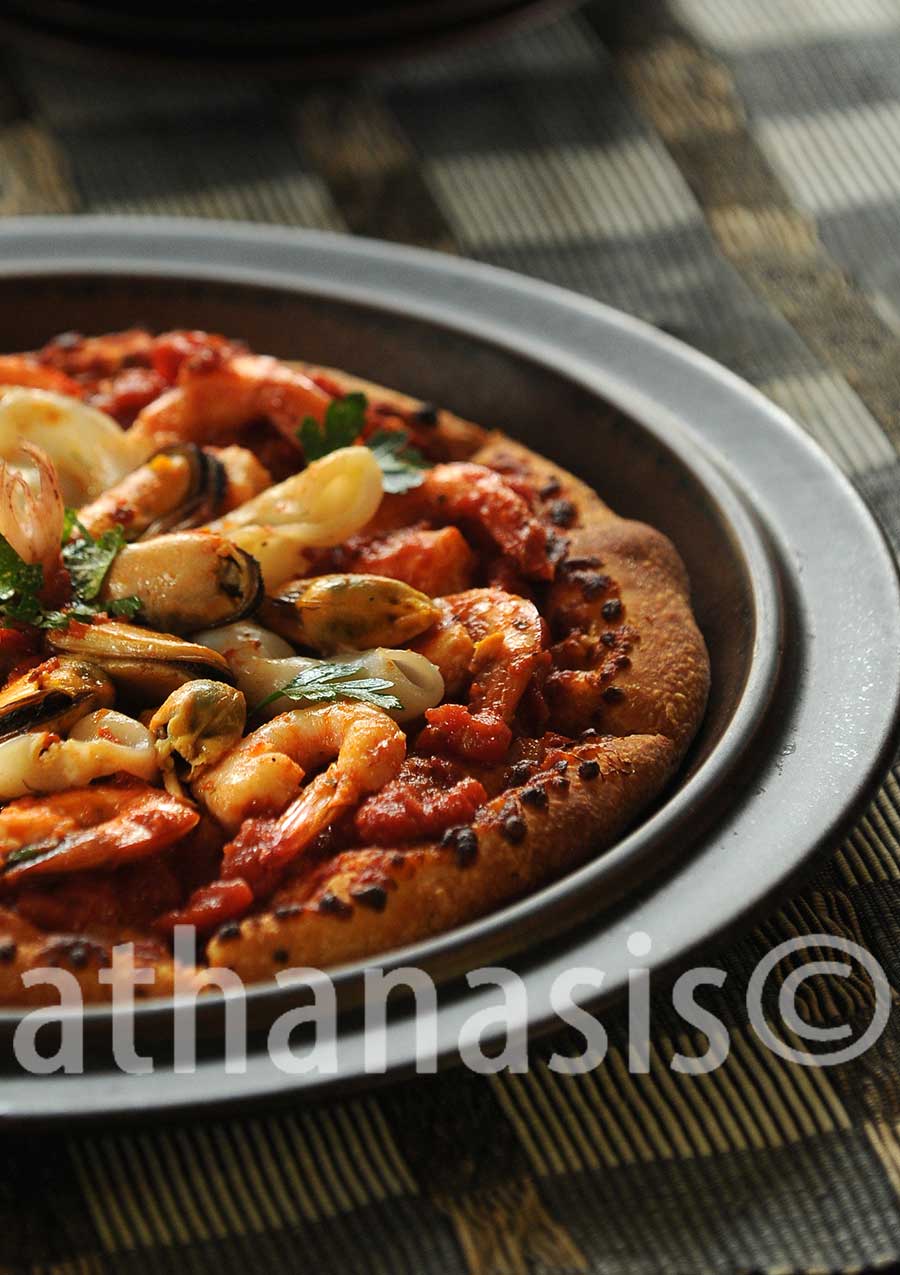Μια διαφορετική πίτσα με θαλασσινά . Η φωτογραφία δημοσιεύτηκε στο περιοδικό Vita .